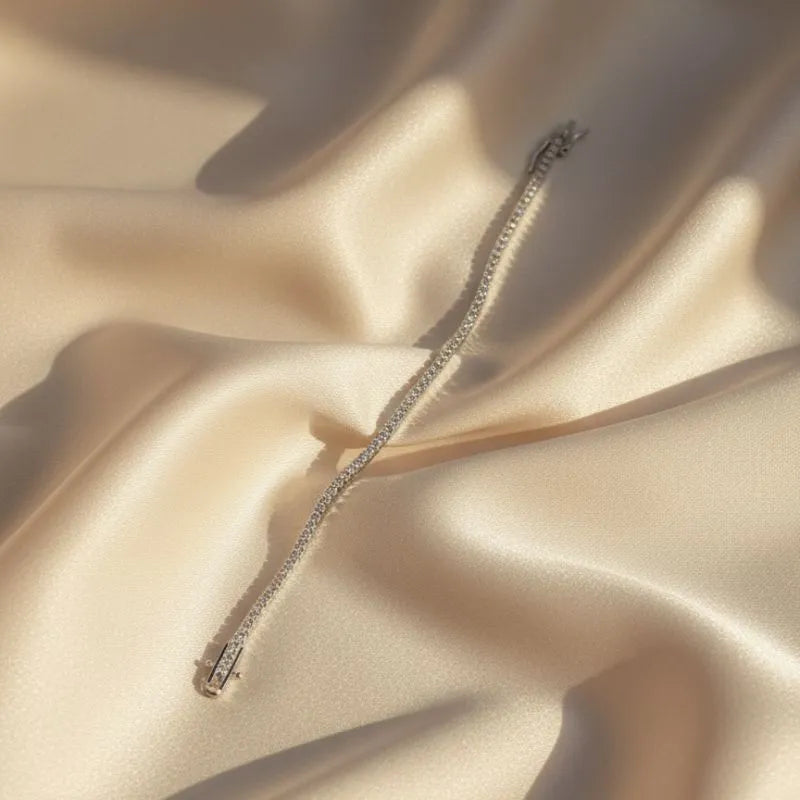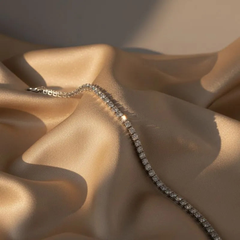 The Classic Crystal Tennis Bracelet is a timeless symbol of elegance, designed for women who love refined sparkle with effortless sophistication. This delicate piece features a seamless line of brilliantly cut crystals, each carefully set to reflect light beautifully and create a radiant, balanced shine around the wrist. Its classic silhouette makes it a staple accessory that instantly elevates any look, from casual daytime outfits to evening glamour.