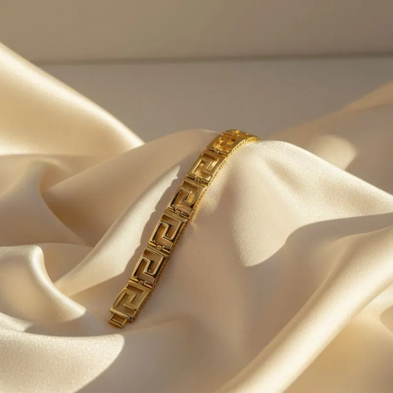 The gold-plated Greek key bracelet stands as a masterpiece of timeless sophistication, meticulously crafted for the modern woman who appreciates refined luxury and historical charm. This exquisite jewelry piece features the iconic Greek key motif, a symbol of infinity and eternal flow, to ensure maximum brilliance from every possible angle.
