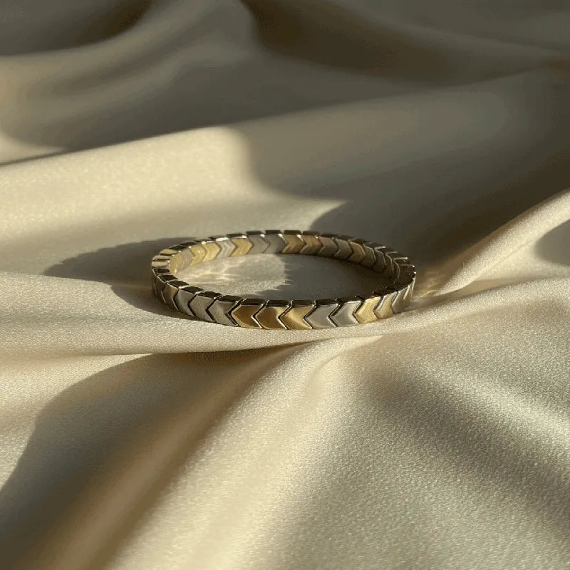 The Toned Arrow motif bangle bracelet stands as a masterpiece of timeless sophistication, meticulously crafted for the modern woman who appreciates refined luxury. This exquisite jewelry piece features a sleek and symbolic arrow motif that effortlessly blends modern aesthetics with functional comfort to ensure maximum brilliance from every possible angle.